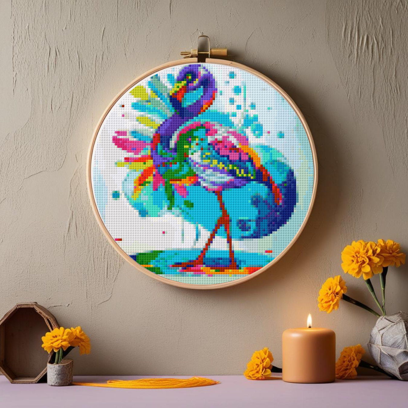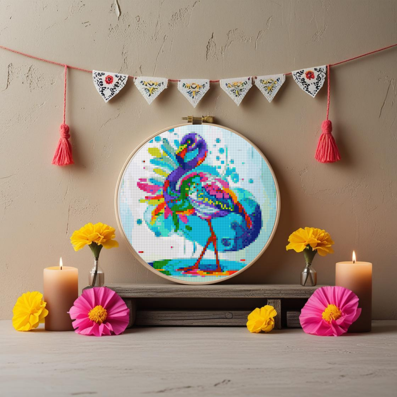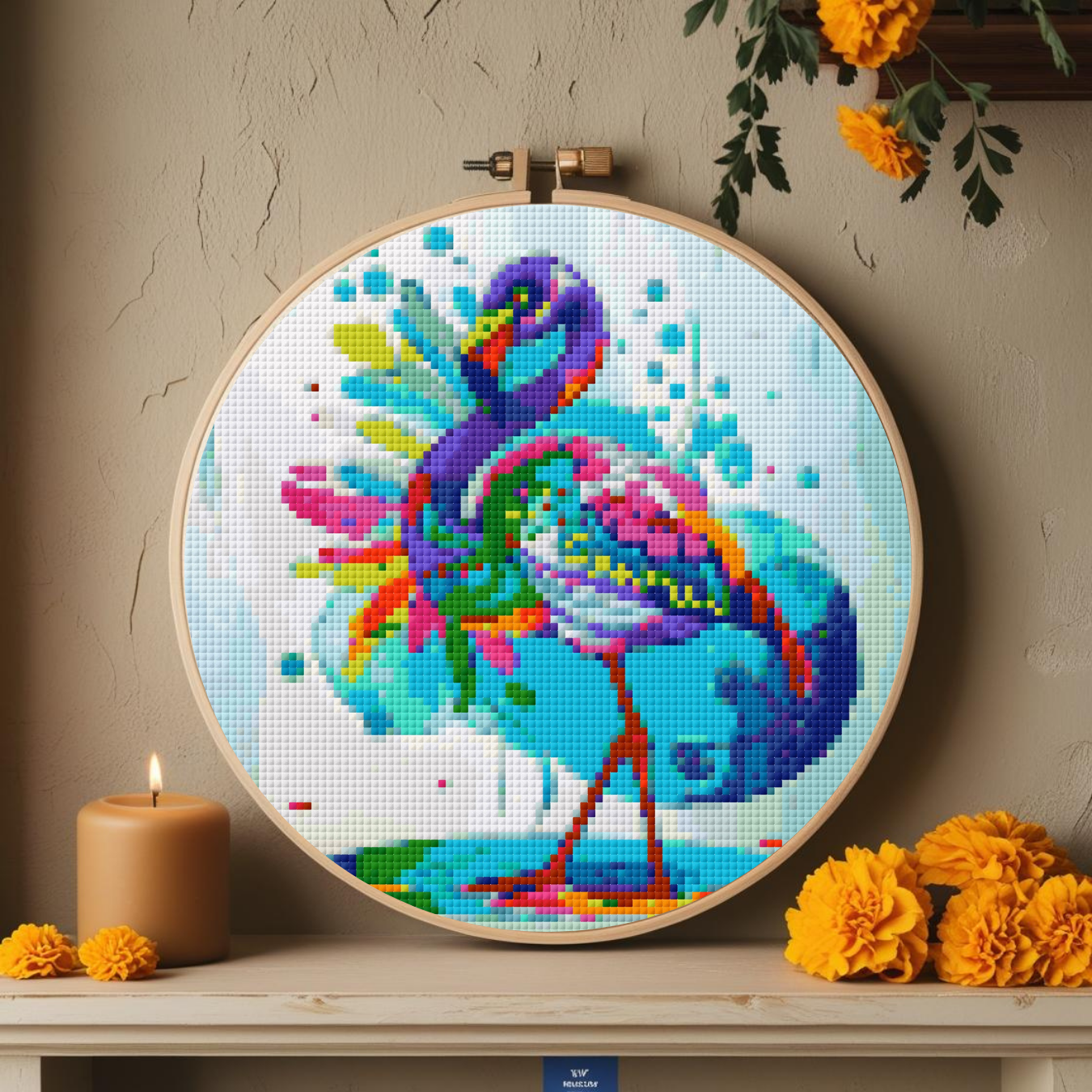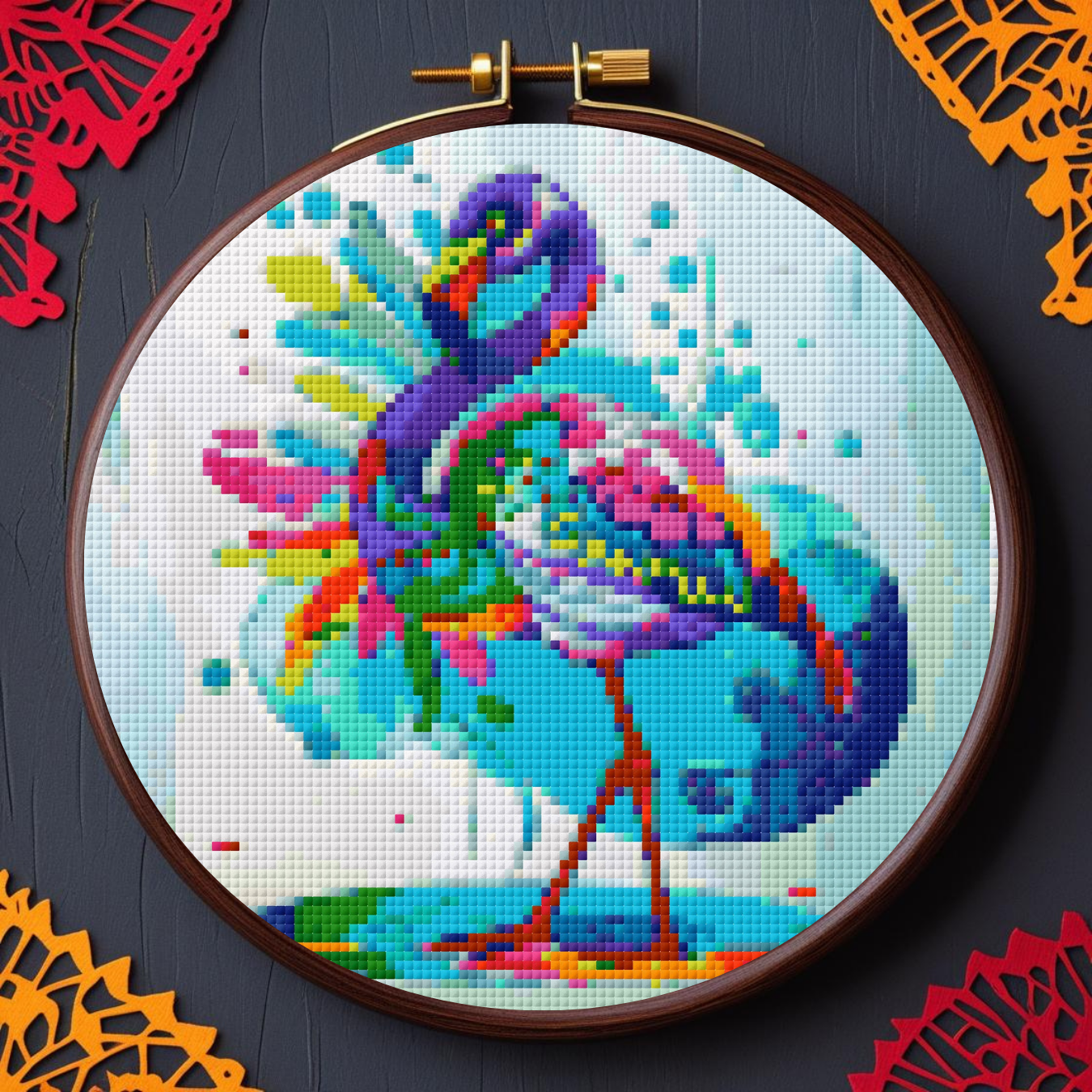 Celebrate color, spirit, and stitching with this Day of the Dead Flamingo Cross Stitch Pattern.