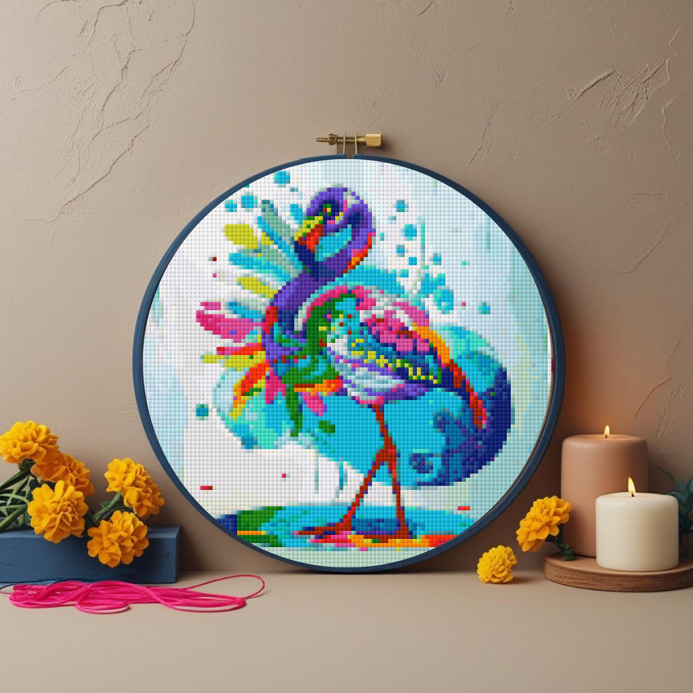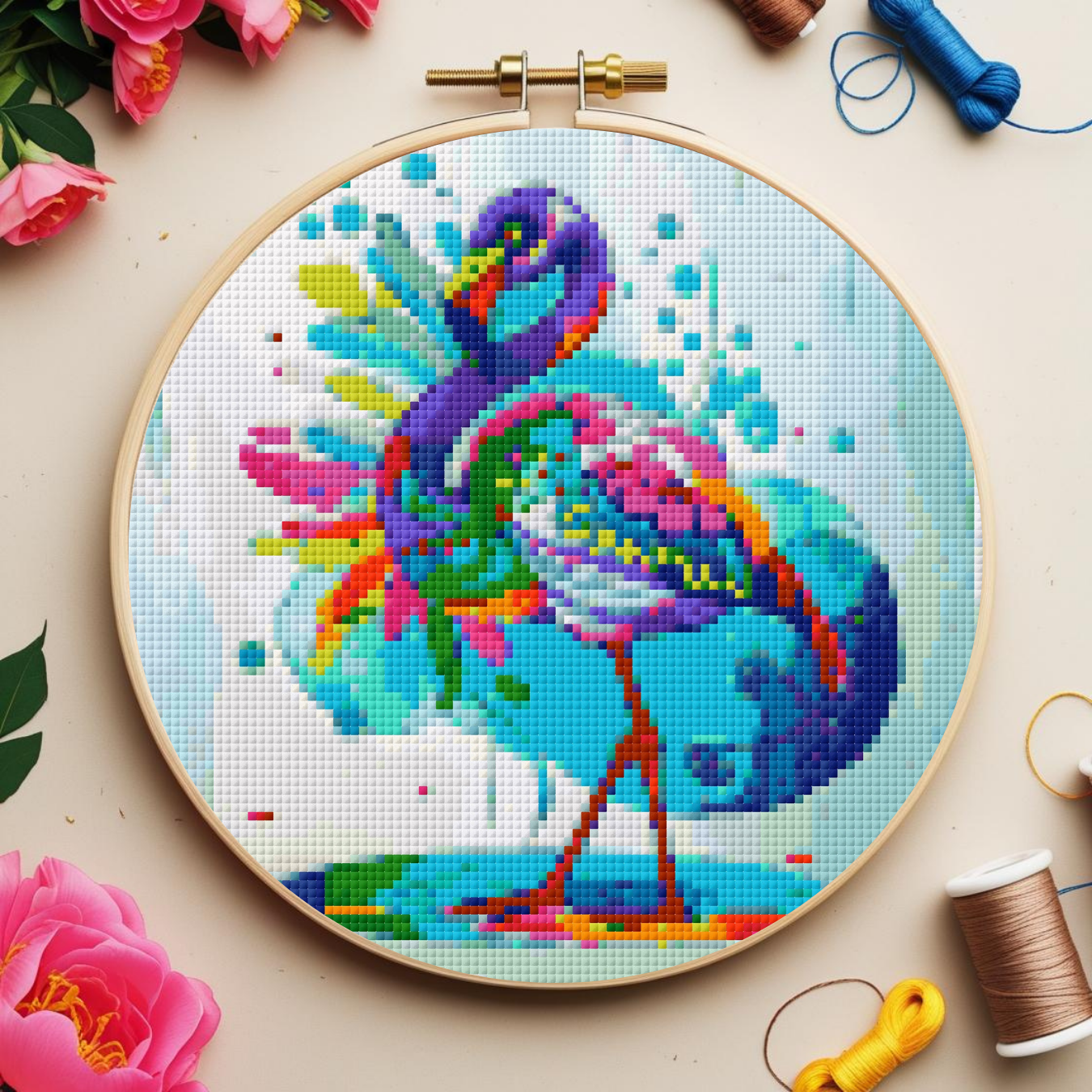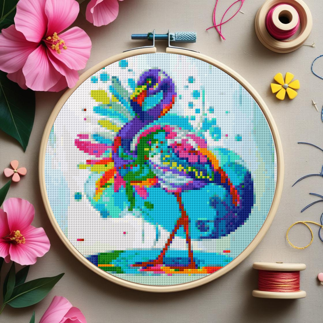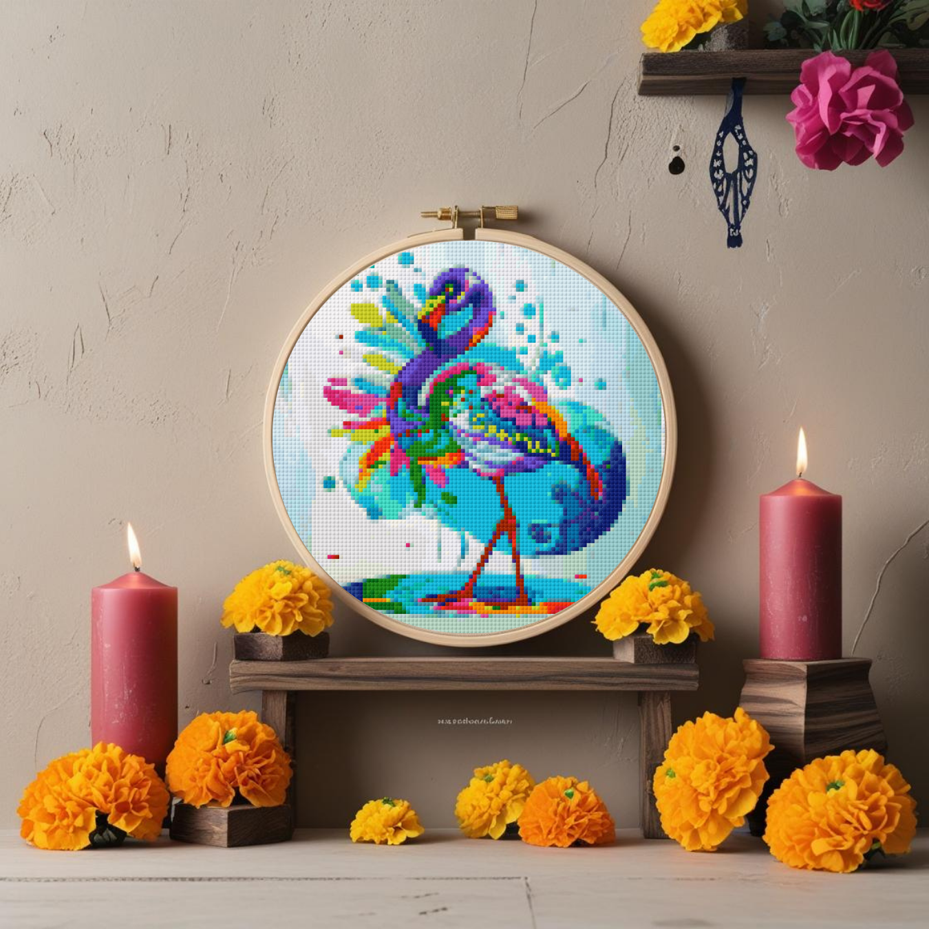 Celebrate color, spirit, and stitching with this Day of the Dead Flamingo Cross Stitch Pattern.