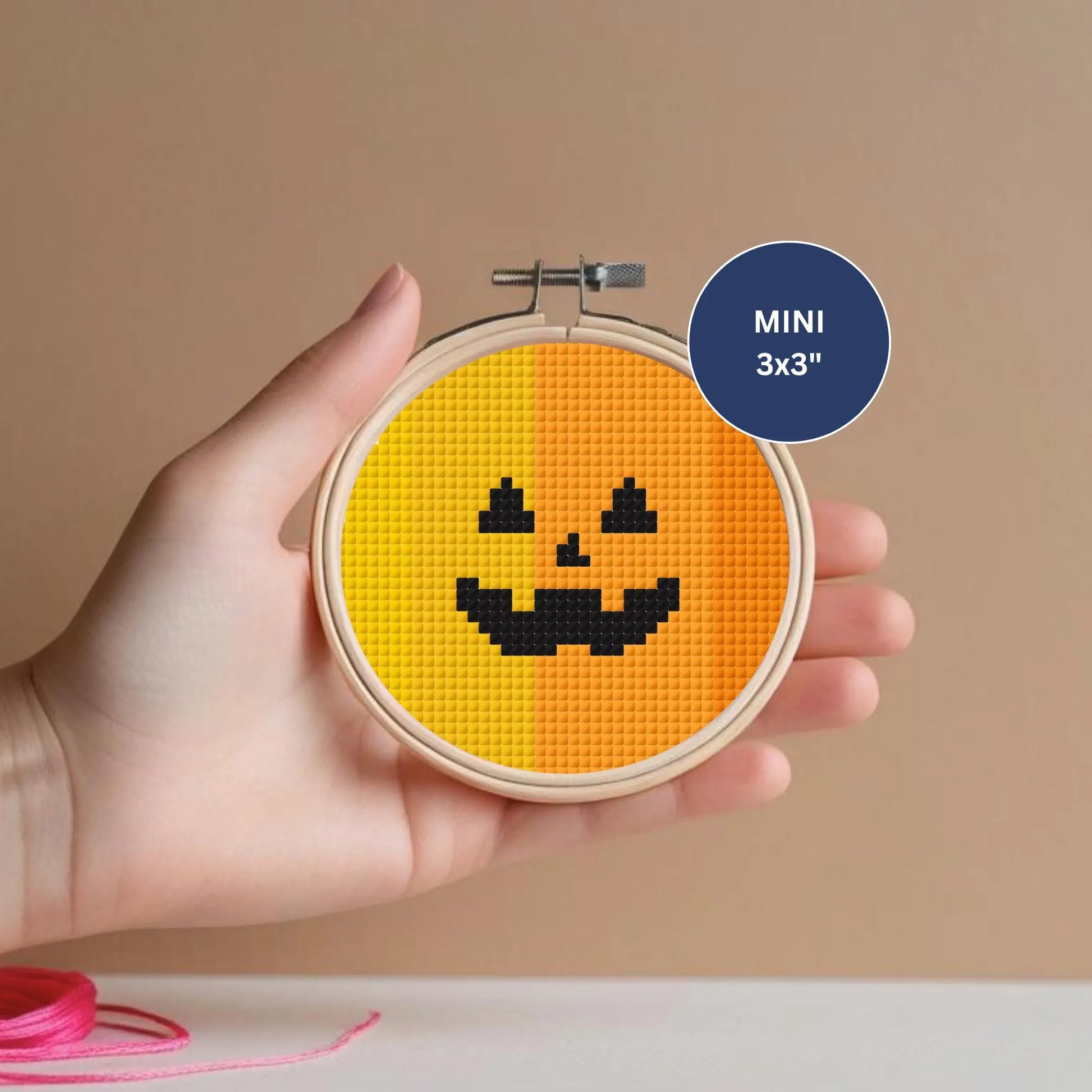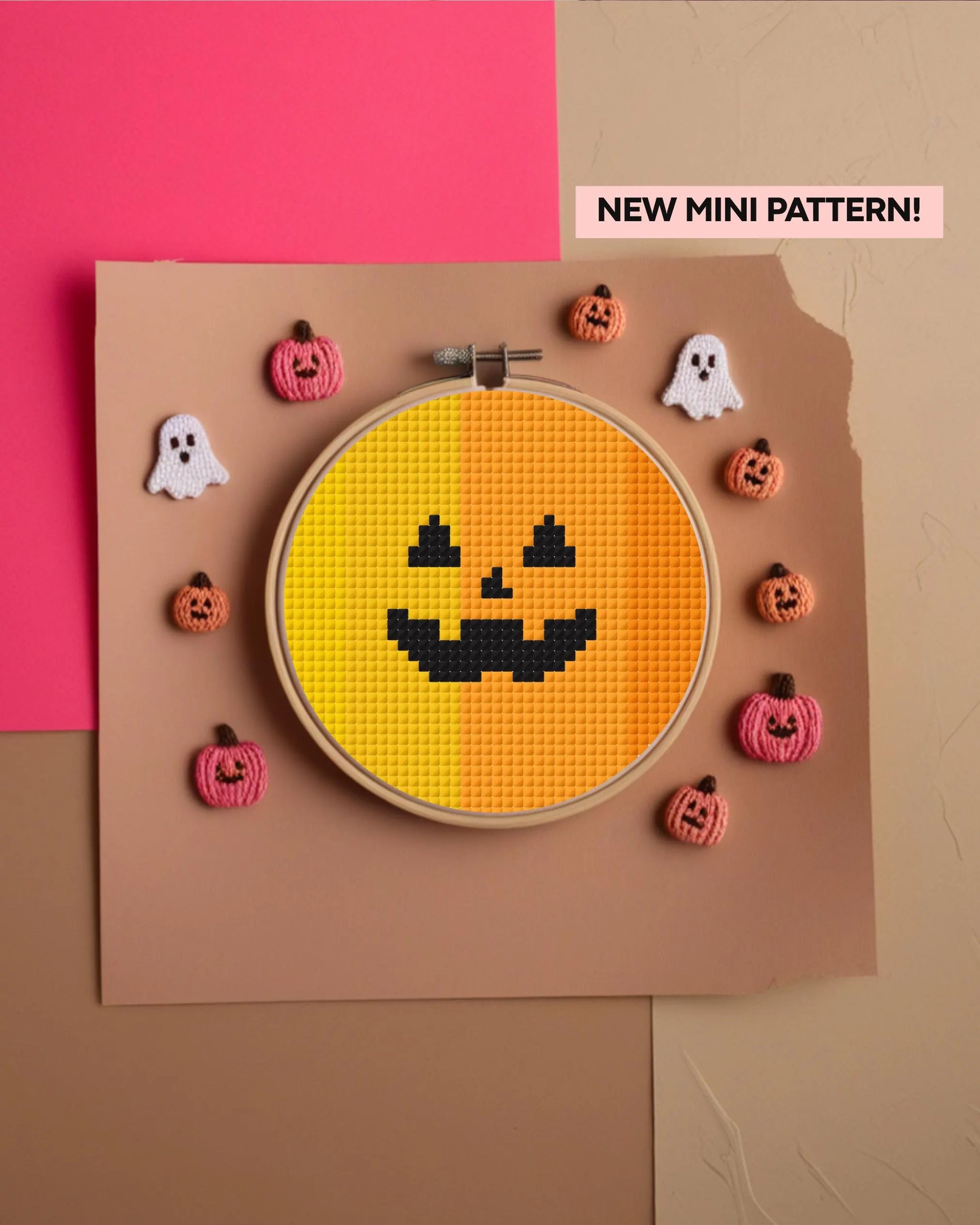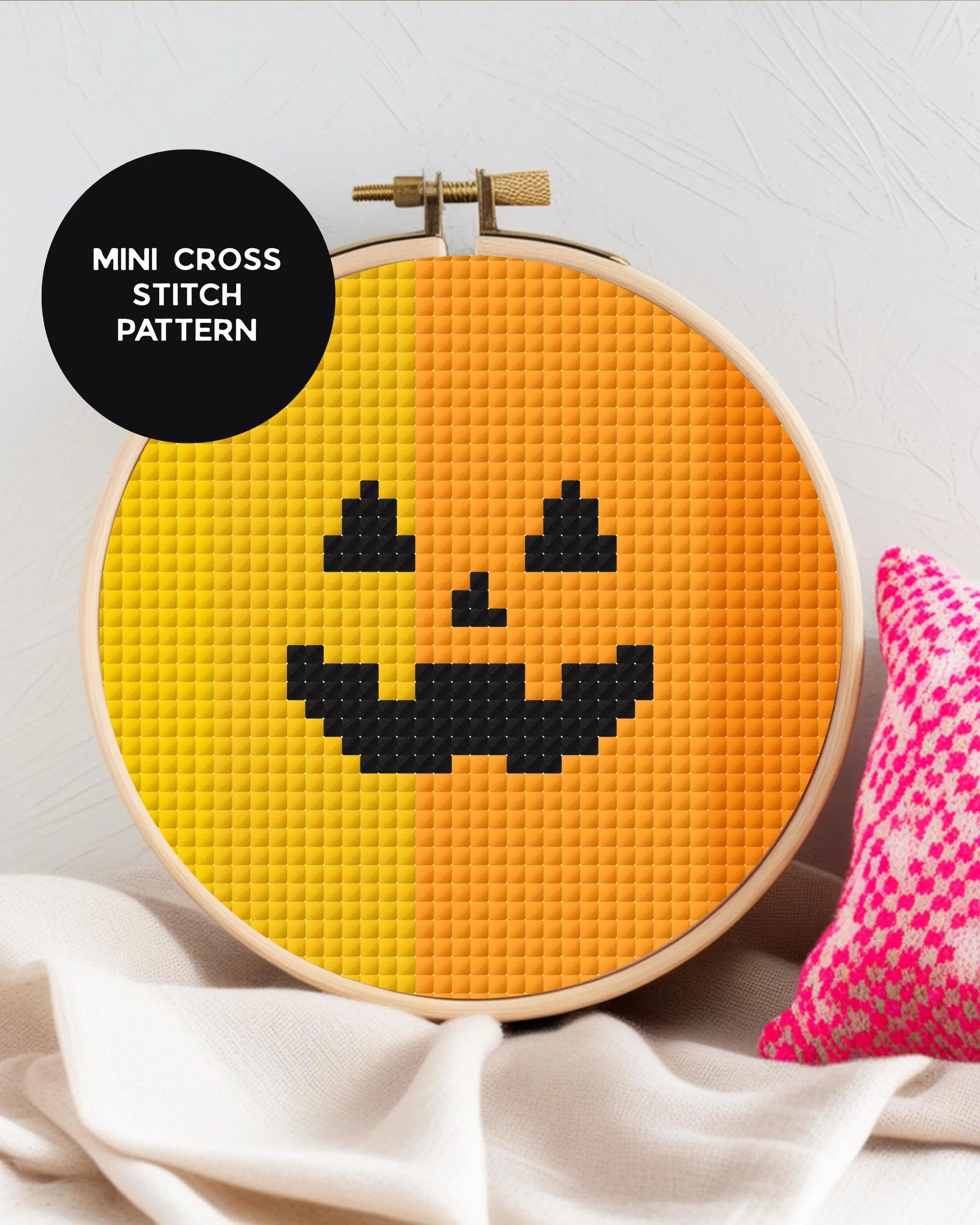 Capture the Halloween spirity with this Mini Pumpkin Cross Stitch Pattern featuring a stunning yellow-to-orange gradient. This instant download pumpkin cross stitch chart offers: