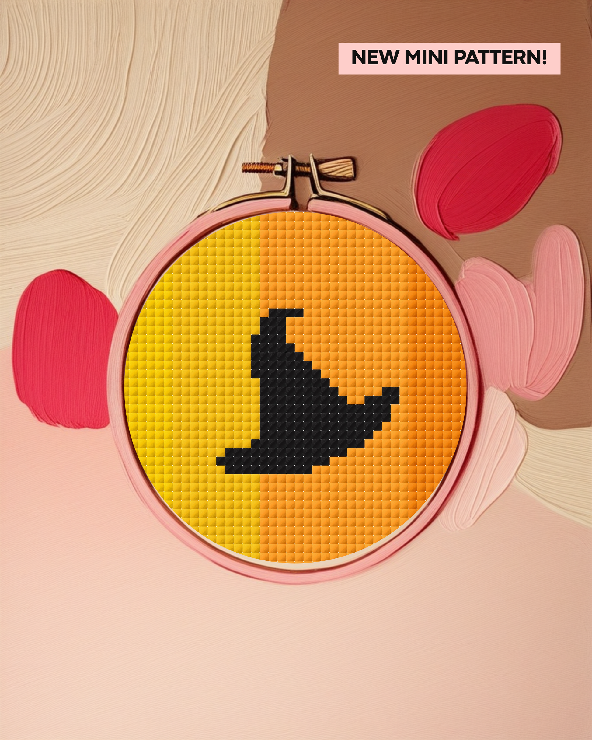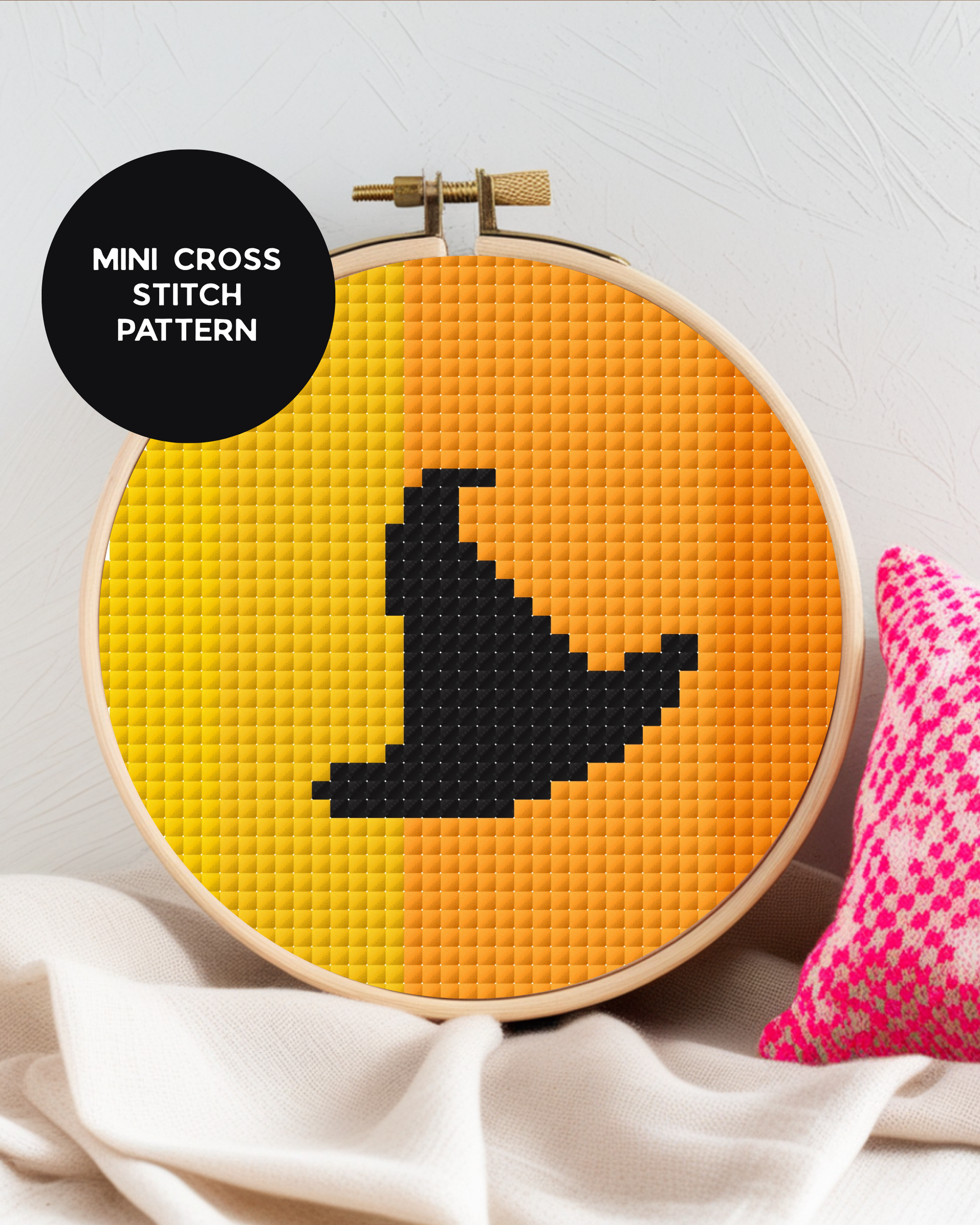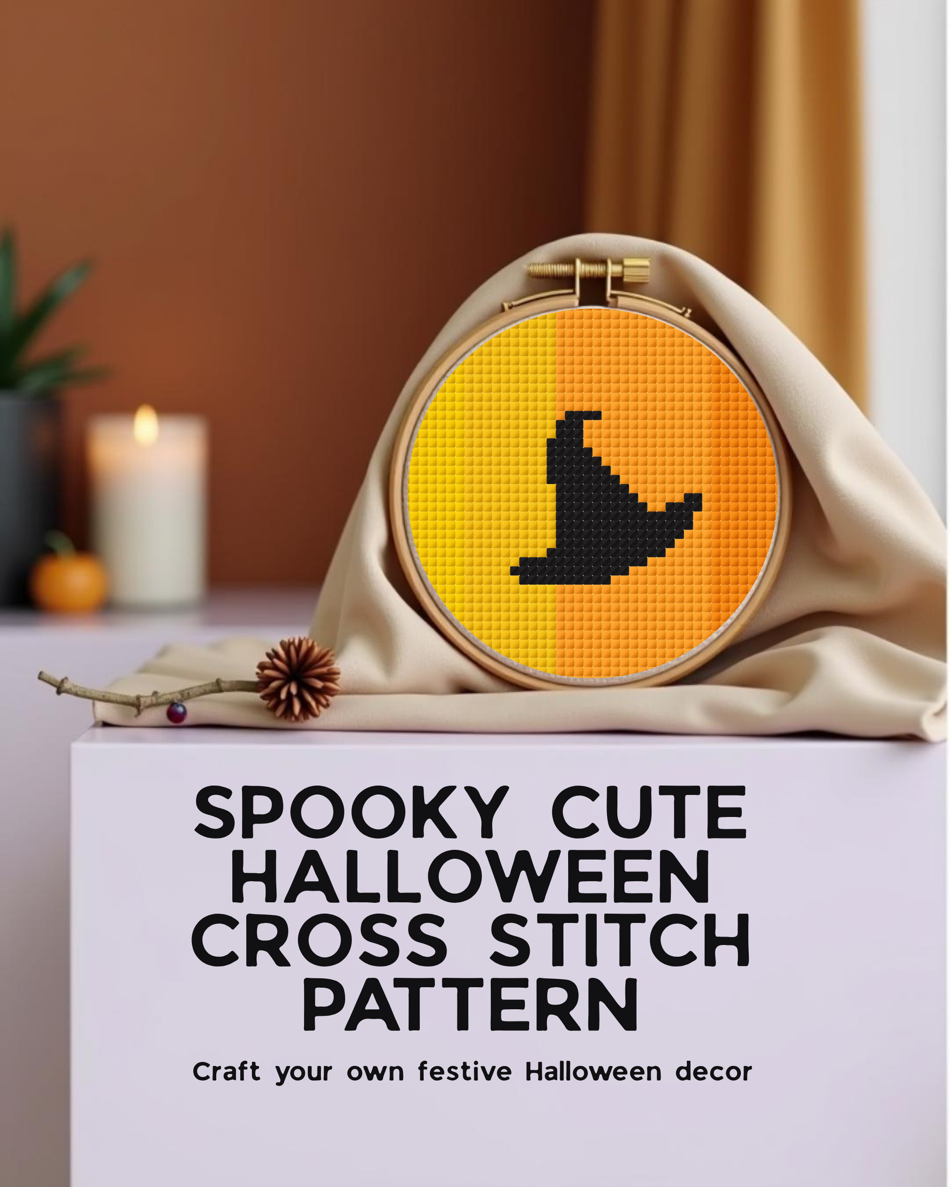 Get into the Halloween spirit with this mini witches hat cross stitch pattern! Designed for spooky season lovers, this easy 3x3 inch PDF pattern is perfect for beginners and seasoned stitchers alike. The black silhouette of a classic witch hat pops against a stunning yellow-to-orange ombré background, making it a charming and fun project for fall décor, handmade ornaments, or quick gifts.