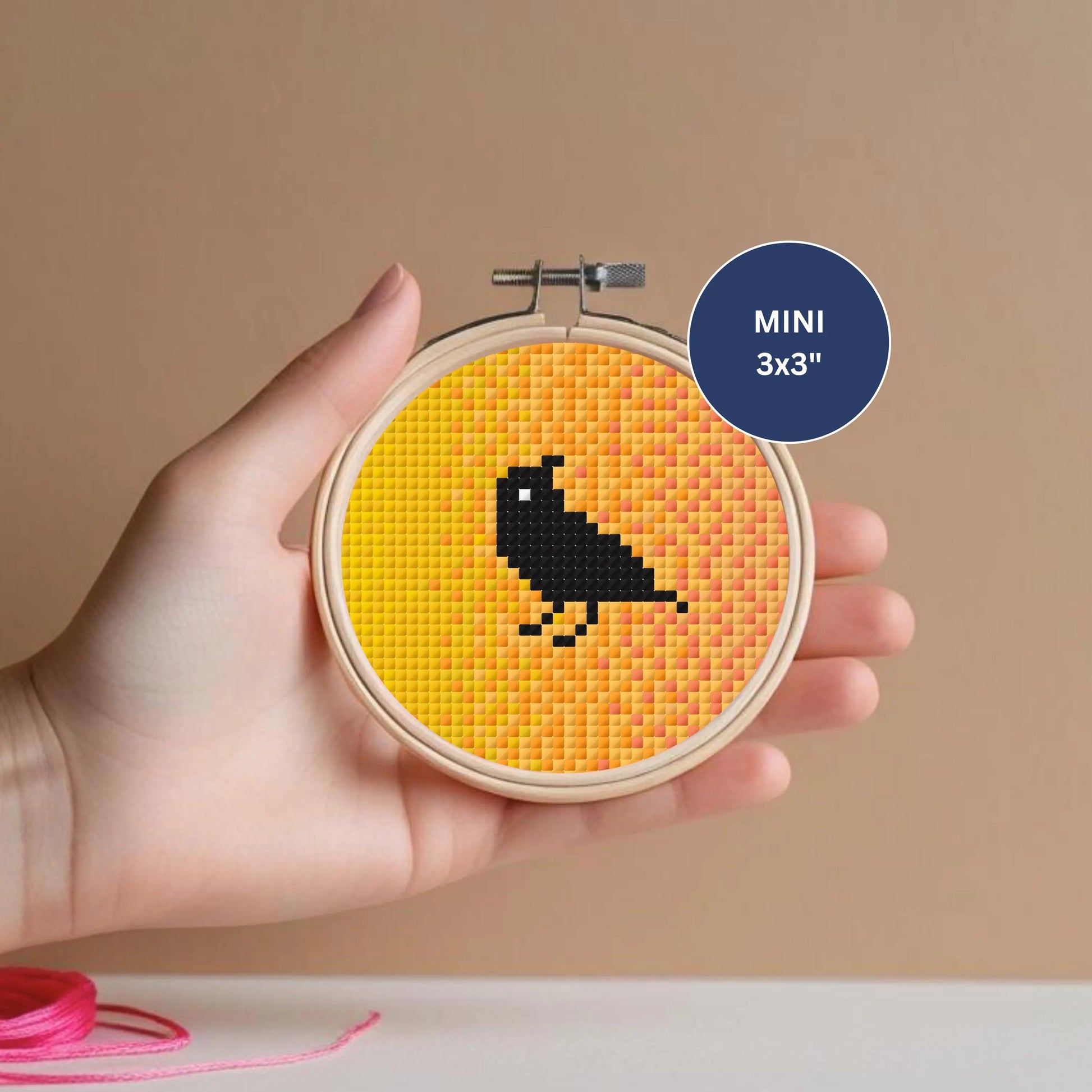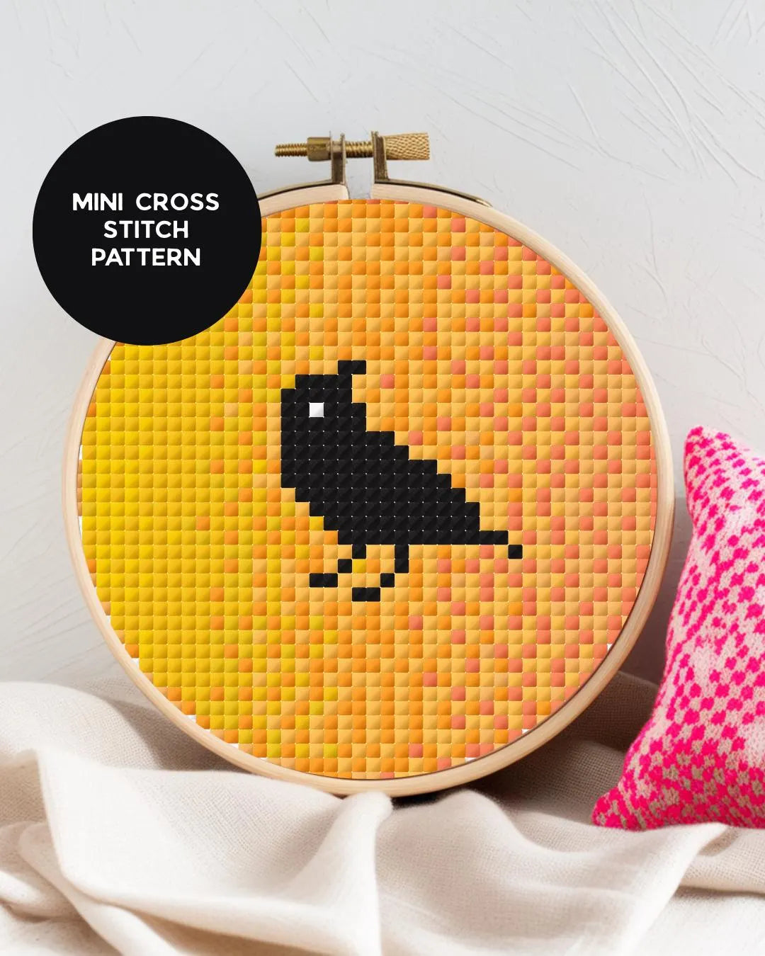 Ombre Mini Crow Cross Stitch Pattern – Halloween Instant PDF